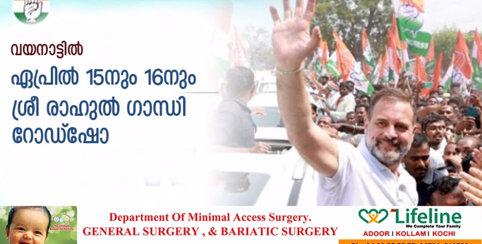 രാഹുല്ഗാന്ധി വീണ്ടും വയനാട്ടിലേക്ക്; ഏപ്രില് 15നും 16നും റോഡ്ഷോ