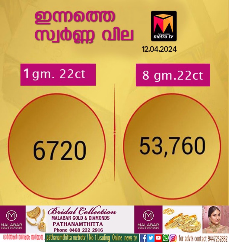 ഇന്നത്തെ സ്വർണ്ണ വില 12/04/2024